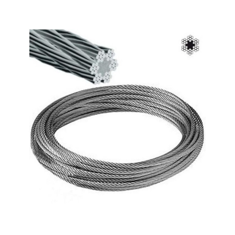 Cable de acero galvanizado de alta calidad para uso general. Presenta gran flexibilidad y larga duración frente a la corrosión. Ideal para trabajos de carga media como mecanismos ligeros, agricultura, bricolaje, tirantes, decoración, etc.