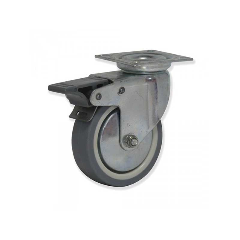 RUEDA GIRATORIA CON FRENO DE TERMO-CAUCHO 100 MM PLETINA PARA MUEBLES Y CARGAS LIGERAS SOPORTA 70 KG